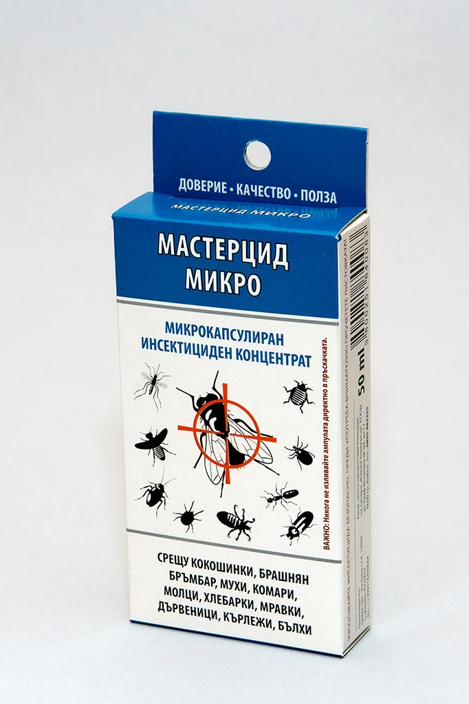 Начин на употреба-Мастерцид Микро е концентриран микрокапсулиран инсектицид-акарицид на водна основа, с широк спектър на действие и продължителен ефект най-малко 2-3 седмици