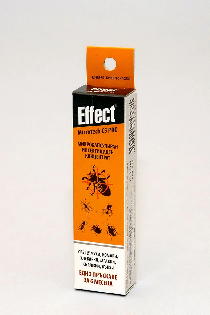 Употреба срещу летящи насекоми (комари, мухи): пръскат се повърхностите, по които насекомите кацат.