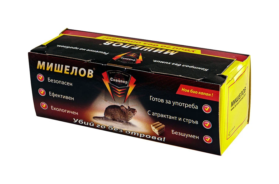 Мишелов спира и убива мишката чрез силно фиксиращото лепило. Иновативното е, че битовите вредители търсят капана за да влязат. Формата на тунел и аромата на масло и фастък ги привлича. Влиза и не излиза, защото капанът е зареден върху работната повърхност с не токсично лепило, атрактант и стръв. Не докосвайте вътрешността с ръка - гризачите усещат човешката заплаха!