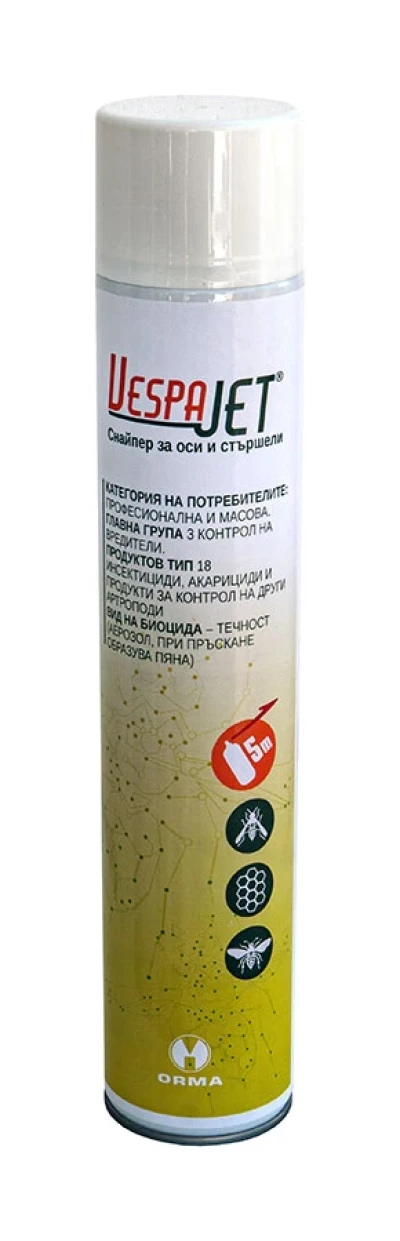 Област на приложение: Биоцидът е инсектицид за борба с оси (единични насекоми и гнезда) и стършели (единични насекоми) на открито и закрито в битови и обществени сгради, в улуци,по външни щори, первази на прозорци, греди от покривната конструкция, под навеси, зад външни тела на климатични системи, в цепнатини и пукнатини по пода и стените.